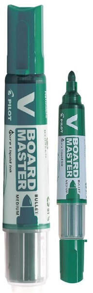Pilot BeGreen V-Board Master 10 db/csomag zöld táblamarker A Pilot BeGreen V-Board Master egy cserélhető patronos, folyékony tintával töltött táblamarker. Az újfajta tintatovábbító rendszer lehetővé teszi az azonnali írást, rázás vagy pumpálás nélkül. A V-Board Master marker újrahasznosított műanyag felhasználásával készült, mellyel a Pilot csökkenti ökológiai lá