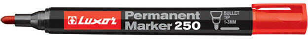 Gyorsan száradó színtartó festék, írásképe törlés- és vízálló, szinte minden felület feliratozására alkalmas. Luxor rostiron, Permanent Marker 250 B, kerek hegyű, 1-3 mm, piros. Alkoholbázisú, kemény akril heggyel rendelkező, a legtöbb felületen használható marker. Ideális mindennapi irodai és otthoni használatra. Írásképe száradás után törlés és vízálló. X