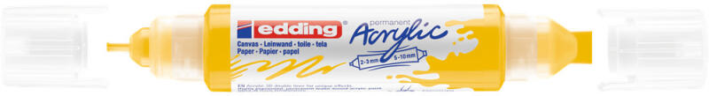 AKRIL MARKER 2-3MM ÉS 5-10MM 3D KÉTVÉGŰ EDDING 5400 CITROMSÁRGA Kétoldalú edding 3D akril tubus egyedi effektusokhoz és sötét és világos felületekre történő festéshez, ideális olyan anyagokhoz, mint a vászon vagy a festőpapír. - A kétoldalú tubus két különböző írócsúccsal rendelkezik 2 - 3 mm és 5 - 10 mm vonalvastagságban. - A kiváló minőségű, pigmentált, v