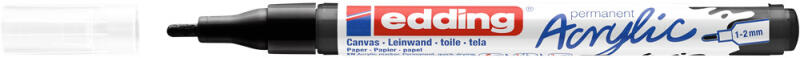 AKRIL MARKER 1-2 MM EDDING 5300 FEKETE D10 Akril marker világos vagy sötét felületekre történő festéshez, ideális olyan anyagokhoz, mint a vászon vagy a festőpapír. - A kerekített csúcs vonalvastagsága 1-2 mm. - A kiváló minőségű, pigmentált, vízbázisú akrilfesték száradás után rendkívül tartós, átlátszatlan, fényálló és szagtalan. - A neon sárga szín áttets
