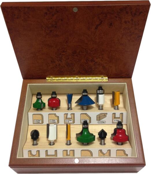 Fa dobozban 6 mm-es befogással Keményfém lapás vágóéllel, vezetőgörgővel, kiváló minőségű csapággyal. Makita marókés készlet fa díszdobozban A marófejek 6mm befogásúak