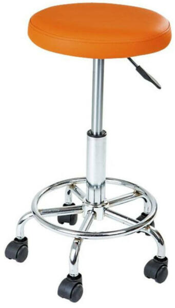 Praktikus, magasság állítható szék. Stabil fémszerkezet, ötkarú lábbal ellátva. A kárpitozás minőségi és puha műbőrből - ún. soft touch-ból van elkészítve, 4 cm vastagságú sűrű habszivaccsal bélelve. A magassága 48 cm-63 cm-ig állítható. A széknek kényelmes kör alakú ülőrésze van, 35 cm-es átmérővel.