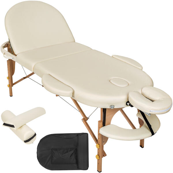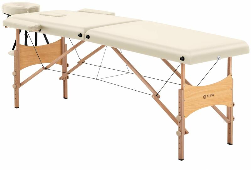 Szín: krém 3 cm vastag bélés, fertőtlenítő és masszázsolaj ellenálló Keret anyaga: fa Mérete: 186 x 68 cm (H x Sz) Szélesség kartámaszokkal: 112 cm Hossz fejtámlával: 215 cm Állítható magasságú: 62-82 cm között Teherbírás: 150 kg Tömeg: 14,5 kg Táska mérete: 95 x 70 cm (H x Sz) Könnyen szállítható és tárolható a mellékelt hordtáskában