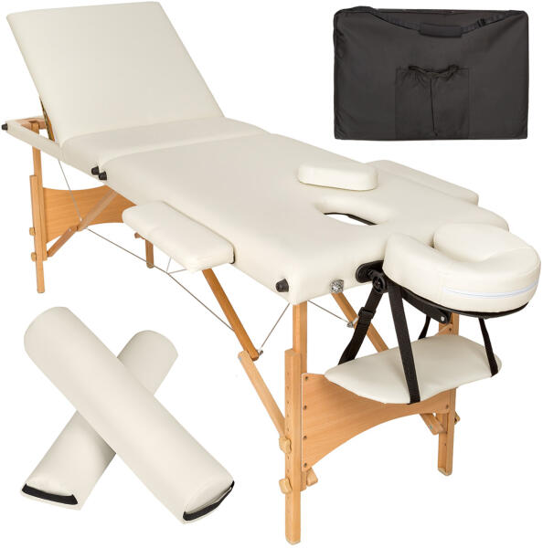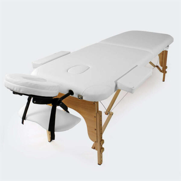 Ez az összecsukható mobil masszázs asztal kényelmet és pihentető masszázsélményt kínál. Pillanatok alatt könnyen összeszerelhető és szétszerelhető, így tökéletes a terapeuták, professzionális masszőrök és otthoni felhasználók számára. A masszázságy könnyű bükkfa keretből, kényelmes és extra vastag szivacspárnából, valamint olaj- és vízálló szintetikus b