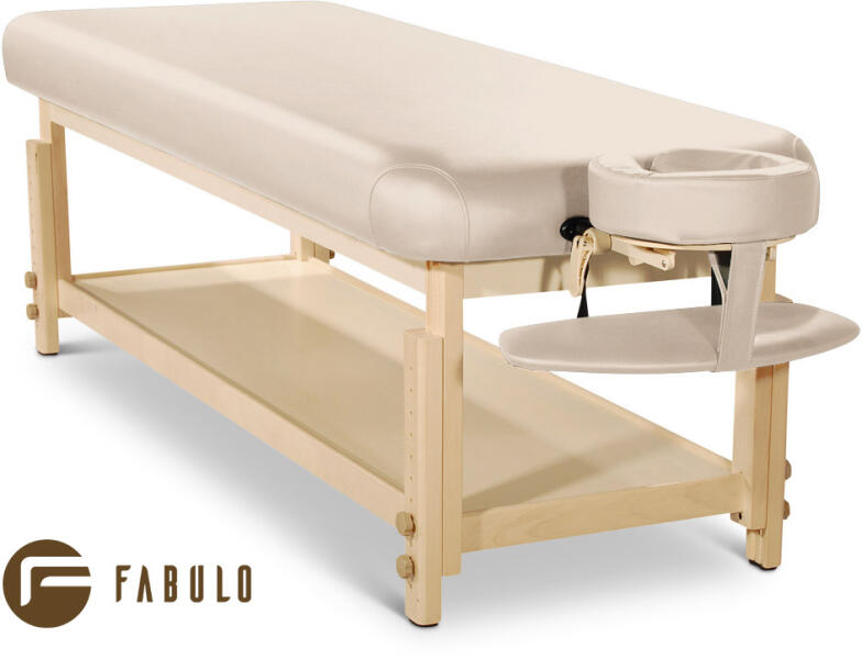 A stabil FABULO Spa Lux V1 Set favázas fix masszázságy számos előnnyel rendelkezik A Fabulo SPA Lux V1 Set masszázsasztal a kényelem érzését nyújtja minden ügyfélnek a kellemes relaxáció során. Az ágy nem csak masszázsokhoz használható, remek szolgálatot nyújt kozmetikai, vizsgáló vagy relaxációs ágyként is. A favázas, fix masszázságyat főleg azoknak ajánljuk, akik