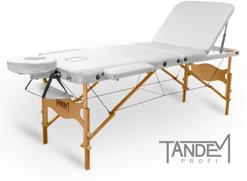 Miért válassza a Tandem Profi W3D 3 zónás, összecsukható masszázságyat? A Tandem Profi W3D kezelőágy minden tekintetben az egyik legbiztonságosabb összecsukható masszázságyunk: a dupla vastagságú préselt faváznak köszönhetően extra teherbírással rendelkezik és még az egypontos terhelés sem kottyan meg neki! A masszázsasztal lábai csúszásmentes gumi végekkel rendelke