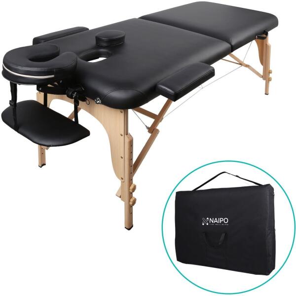 Szín: kék 3 cm vastag bélés, fertőtlenítő és masszázsolaj ellenálló Keret anyaga: fa Méret: 186 x 68 cm (Ho x Sz) Állítható magasságú: 59-81 cm Fejtámla mérete: 29 x 27 cm Teherbírás: 150 kg Súly: 17,3 kg Táska mérete: 95 x 70 cm Könnyen szállítható és tárolható a mellékelt hordtáskában