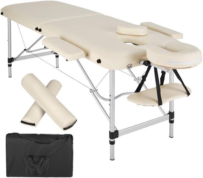 Szín: krém fehér 3 cm vastag bélés, fertőtlenítő és masszázsolaj ellenálló Keret anyaga: fa Mérete: 186 x 68 cm (H x Sz) Szélesség kartámaszokkal: 112 cm Hossz fejtámlával: 215 cm Állítható magasságú: 62-82 cm között Teherbírás: 150 kg Tömeg: 15 kg Táska mérete: 95 x 70 cm (H x Sz) Könnyen szállítható és tárolható a mellékelt hordtáskában