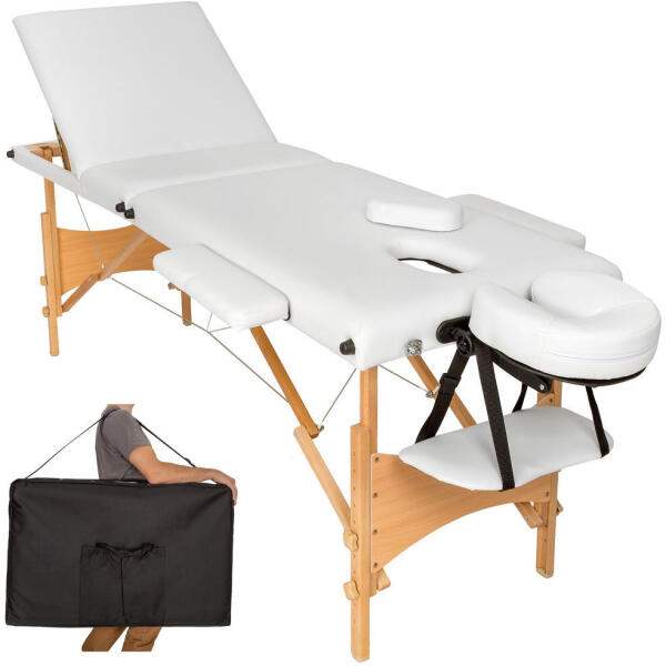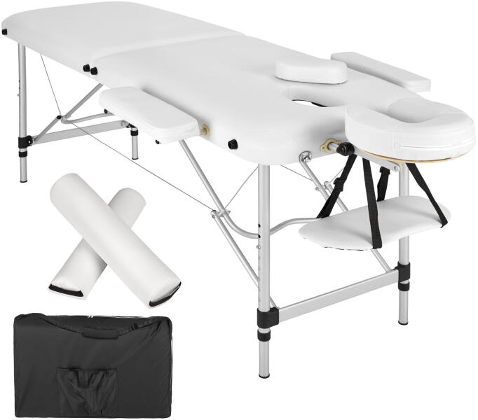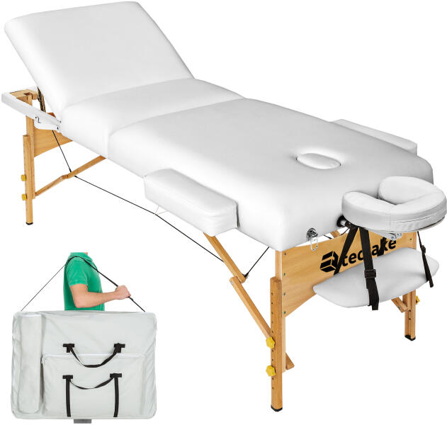A tectake vállalat egy csúcsminőségű, fényűző és nagyon stabil masszázságyat kínál professzionális masszőröknek. Az ágy praktikus összecsukási rendszeren alapul, amely néhány másodperc alatt lehetővé teszi a gyors szét- és összeszerelést, nagy stabilitás, biztonság és kényelem jellemzi, amelyet a 10 cm vastag, Oxford 600D anyagból készült kárpit biztosít. Tök