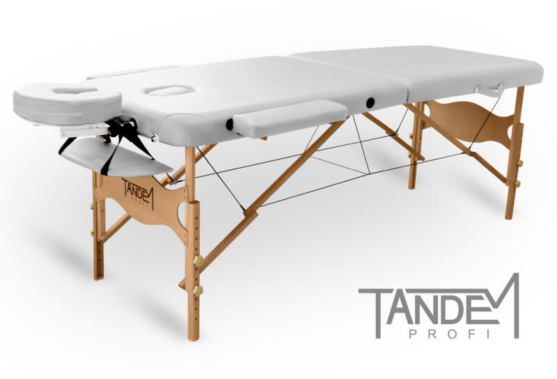 Miért válassza a Tandem Profi W2D 2 zónás, összecsukható masszázságyat? A Tandem Profi W2D kezelőágy minden tekintetben az egyik legbiztonságosabb összecsukható masszázságyunk: a dupla vastagságú préselt fa váznak köszönhetően extra teherbírással rendelkezik és még az egypontos terhelés sem kottyan meg! A masszázsasztal lábai csúszásmentes gumi végekkel rendelkeznek