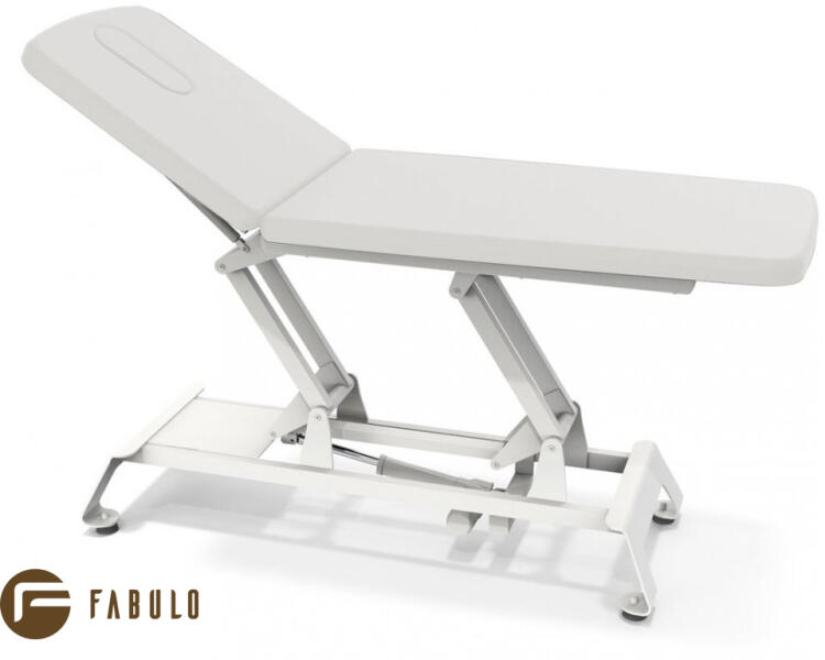 A csúcsminőségű fém szerkezettel gyártott, professzionális, kétrészes Fabulo Camino Basic elektromos masszázságy magassága a lábvezérlővel elektromosan állítható. Az ágy dugóval ellátott arclyuk kivágással rendelkezik. A háttámla pozitív és negatív helyzetbe is állítható, ami nagy fokú kényelmet és különféle helyzetekbe történő elhelyezést biztosít a vend