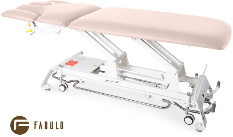 A csúcsminőségű fém szerkezettel gyártott, professzionális, kétrészes Fabulo Camino Russell elektromos masszázságy magassága a keretvezérlővel elektromosan állítható. Széles körű beállítási lehetőségeinek köszönhetően elsősorban masszőrök, fizioterapeuták, kezelőorvosok, valamint a wellness- és szépségiparban dolgozók választják előszeretettel. Az ágy áll