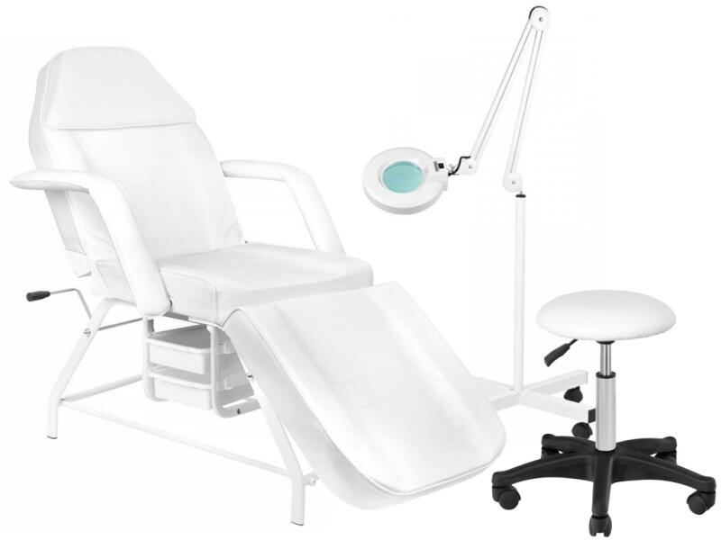 Kedvező árú kozmetikai berendezések egy helyen: a BEAUTYONE Cosmo Classic S4 kozmetikai kezelőágy, kozmetikai szék és nagyítós lámpa szettünkben mindent megtalál, ami egy szépségszalon számára fontos lehet! BeautyOne Cosmo kozmetikai kezelőágy A praktikus fiókokkal felszerelt BeautyOne Cosmo kozmetikai kezelőágy ideális kozmetikai kezelésekhez, szőrtelenítéshez, sminkel