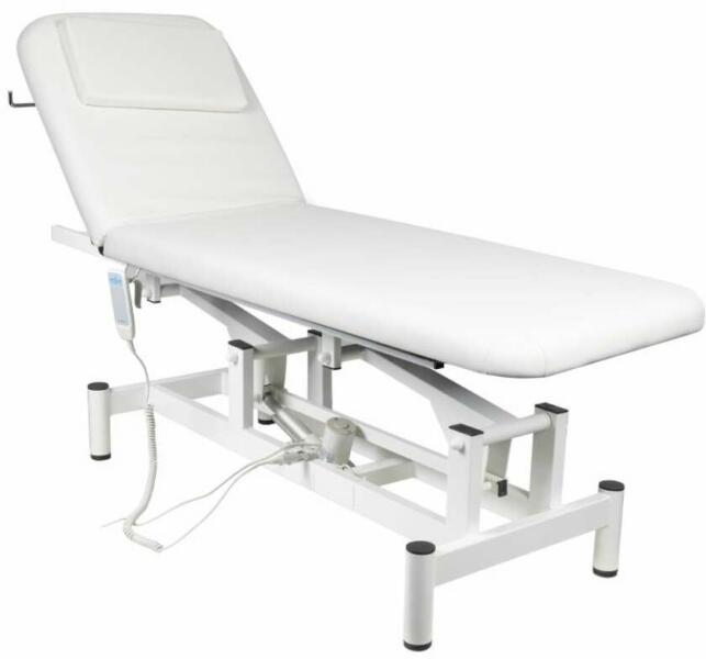 1 motoros kezelőágy, masszázshoz és fizioterápiás kezelésekhez. Magassága motorral emelhető, háttámlája manuálisan. Fejtámlája a kiemelhető párna alatt lélegzőbnyílással rendelkezik. Strapabíró fém váz. A vendégek / páciensek igényeit figyelembe véve magasfokú kényelmet biztosít. Speciális funkciókat és különböző beállításokat kínál szépségszalonjához