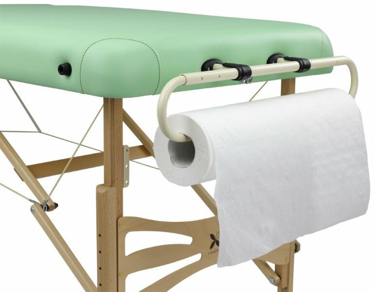 A HABYS® papírlepedő tartó a legtöbb masszázs asztalra egyszerűen felhelyezhető. A tartó hossza a papírlepedő szélességének megfelelően állítható. A papírlepedő tartóra felhelyezhető bármilyen fajta 50-70 cm széles papírlepedő. A hajlékony rögzítő résznek köszönhetően a lepedő egyszerűen felhelyezhető és rögzíthető. A papírlepedő tartó bármely masszázs