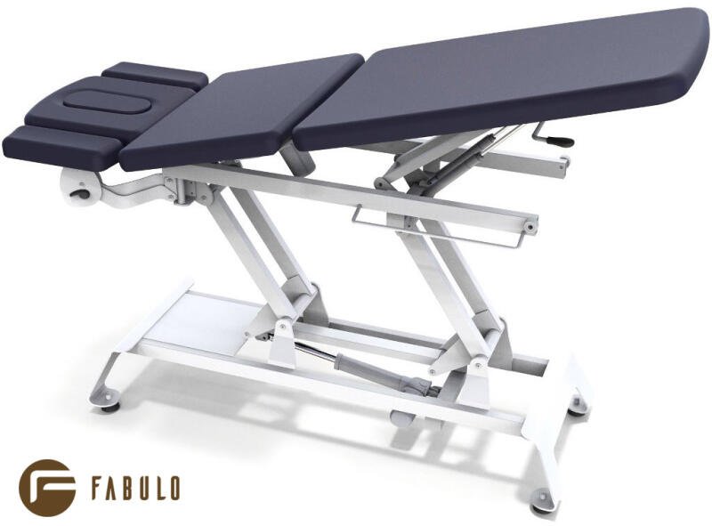 Professzionális Fabulo Camino Infinity elektromos masszázságy kiváló minőségű fém szerkezettel és lábkapcsolóval elektromosan megemelhető középső résszel és elektromosan állítható magassággal. Az elektromos masszázságy kar-, hát-, és lábtámlája valamint középső része számtalan helyzetbe állítható. Mindezeken kívül az ágy Trendelenburg pozícióba is állíth