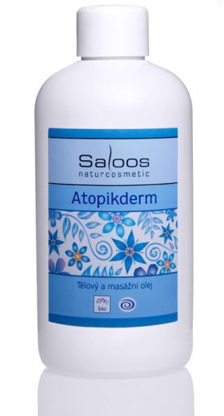 A Saloos Atopik Derm növényi bio masszázsolaj és testolaj kivételes, tisztán természetes biotermék. Gondoskodást és ápolást nyújt az akut állapotú ekcémás, pikkelysömörös és kiütéses bőrnek, nyugalmi fázisban pedig megelőzésképp használatos. A bio masszázs olaj gyulladásgátló hatású és enyhíti a bőr túlzott kipirosodását és viszketését. Az Atopik Derm bi