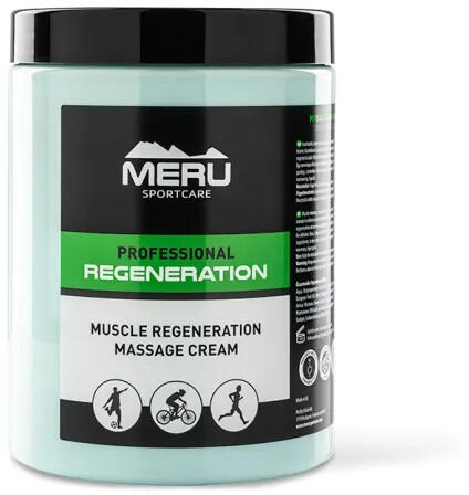 MERU - Izomlazító, Regeneráló Masszázskrém - 1000ml Izomlazító, regeneráló masszírozó krém megerőltetett izmokra. Javasolt edzések, versenyek utáni görcsök és izomláz enyhítésére, húzódások és egyéb sportsérülések megelőzésére. Csökkenti a fáradtság érzetet, frissít, gyorsítja a túlerőltetett testrészek regenerációját. Kifejezetten sportolók számára
