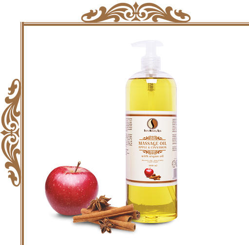 A természetes alma és fahéj illatú Sara Beauty Spa növényi masszázs olaj értékes természetes anyagokat és növényi kivonatokat tartalmaz. Az argán olaj, az E-vitamin és a természetes fahéjas illóolaj finoman ápolja és kényezteti a bőrt. A fahéjas illóolaj kellemesen felmelegít, serkenti a vérkeringést, javítja az anyagcserét és ellazítja a görcsös izmokat. Fő össz