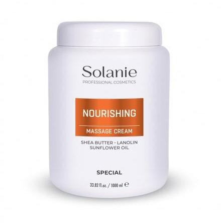 Solanie Basic mélytápláló masszázs krémgél, 1 l- Lágy masszáshoz igazított textúrájának, sheavaj, valamint lanolin-tartalmának köszönhetően komplett 20 perces masszázs végzését teszi lehetővé az arcon, vagy dekoltázson, akár hozzáadott ásványvíz vagy olaj használata nélkül is - A benne lévő napraforgóolaj gazdag E-vitaminban, így erős antioxidáns hatású, B-