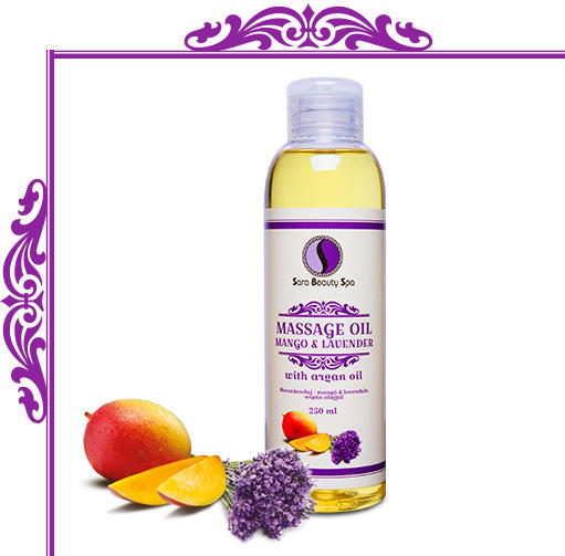 A Sara Beauty Spa mangós-levendulás illatú növényi masszázs olaj értékes természetes anyagokat és növényi kivonatokat tartalmaz. Az argán olaj és az E-vitamin ápolja és puhítja a bőrt. A mangó és levendula friss illata kényeztet és ellazít. Aromaterápiás hatása kellemes relaxációt biztosít. Fő összetevők Argán olaj, E-vitamin, levendula olaj Sara Beauty Spa | Massz