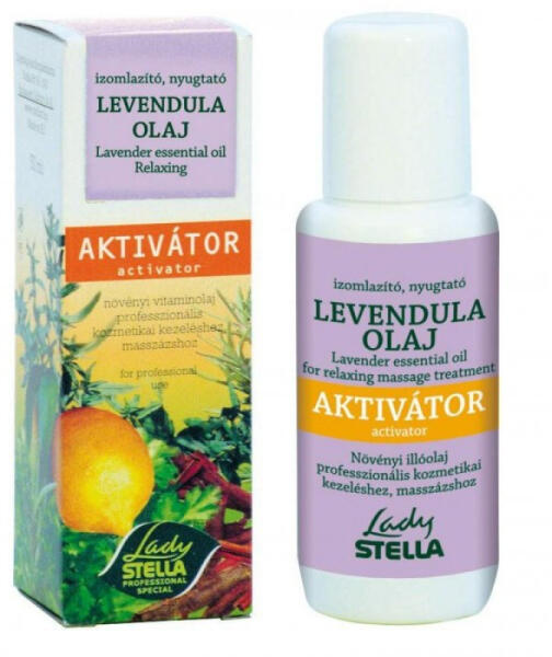 Lady Stella aktivátor Bázis masszázskrémhez és masszázsolajhoz, Levendula, 50 ml - Növényi illóolaj - Speciális problémaorientált kozmetikai kezelésekehez és masszázsokhoz - Arcmasszázshoz 5 ml, testmasszázshoz 10-15 ml aktivátor adagolása javasolt 100 g Lady Stella Bázis masszázskrémhez vagy Bázis masszázs olajhoz - 6 féle gyógynövényes változatban - Levendula olaj: N