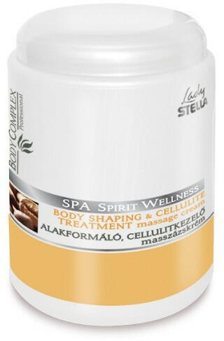 Lady Stella SPA Spirit Wellness Alakformáló Cellulitkezelő masszázskrém 1000ml STE-02020211019712001 Tápláló és hidratáló hatású masszázskrém, amely hatóanyagai révén a test kontúrvonalait előnyösen megváltoztatja. Főbb összetevői: - koffein - L-karnitin - citrom- és borókaolaj - alga - sheavaj Koffein tartalma a tárolt zsírsavak zsírszövetekből való felszabadítá