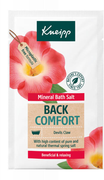 A készítmény az értékes ördögcsáklya kivonatát tartalmazza, amelyet a kozmetika a sporttevékenységek utáni lazító ápoláshoz használ és természetes éterikus kajeputfa-olajat tartalmaz. A Kneipp fürdőkristályok természetes tisztaságú termálsóját az Európában egyedülálló Saline Luisenhall ősi eredetű sókészletéből nyerik évszázados hagyományokat követve. Ez