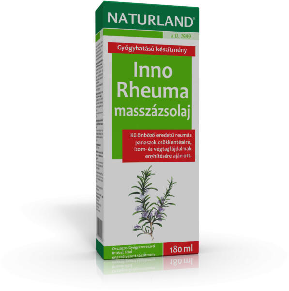 Naturland inno-reuma masszázsolaj 180 ml E recept nélkül kapható gyógyhatású szerrel Ön enyhe reumatikus panaszokat kezelhet orvosi felügyelet nélkül. Az optimális hatás érdekében azonban elengedhetetlen a készítmény körültekintő, előírásszerű alkalmazása.