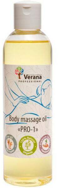 A Verana PRO-1 masszázsolaj gyömbér és gyermekláncfű gyökér, valamint lándzsás útifű természetes kivonatát, extra szűz olajokat és E-vitamint tartalmaz. Kiválóan ápolja a bőrt, felveszi a harcot az öregedés és a cellulitisz ellen, segít eltüntetni a ráncokat, feszesebbé és rugalmasabbá teszi a bőrt. Fokozza a kényelmet a masszázs során, és segít elnyújtani annak