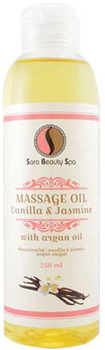 A Sara Beauty Spa vanília és jázmin illatú természetes növényi masszázs olaj értékes természetes anyagokat és növényi kivonatokat tartalmaz. Az argán olaj és az E-vitamin ápolja és puhítja a bőrt. Hosszan tartó síkosságot biztosít. A vanília és jázmin édeskés illata aromaterápiás hatású, kényeztet és relaxál. Fő összetevők Argán olaj, E-vitamin, jázmin olaj