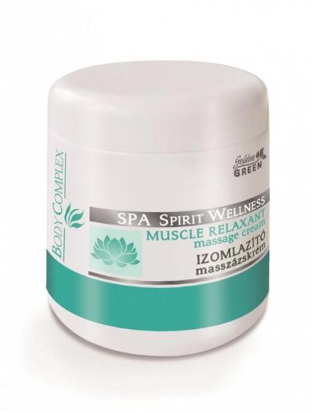TestápolásGolden Green Spa Spirit izomlazító masszázskrém, 250 ml- Kellemesen hűsítő hatású izomlazító masszázskrém - Rozmaring olaj, mentol, kámfor tartalma segít a feszült izmok ellazításában, az izomgörcsök és izomláz enyhítésében - Kiváló a fáradt, elnehezült testrészek felfrissítéséhez - Ajánljuk lazító, relaxáló masszázshoz, nyak-váll öv ellazítá
