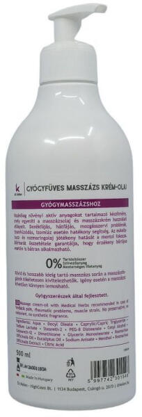 Kizárólag növényi hatóanyagokat tartalmazó készítmény. 500 ml-es masszázskrém; Dr. Kelen termék masszázshoz.