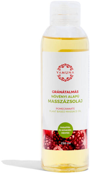 Yamuna masszázsolaj növényi gránátalmás 250 ml Valóságos energiabombaként robban a Gránátalmás növényi alapú masszázsolaj, amelynek friss és lágy aromája egyaránt kényezteti az érzékeket és a fáradt izmokat. A mesterséges színezőanyag mentes olaj édes-savanykás, lédús gyümölcsöt idéző illata lágyan körbeölel és ellazít, miközben puhítja és gyengéden hi