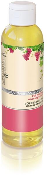 SPA SPIRIT WELLNESS BŐRFESZESÍTŐ MASSZÁZSOLAJ 250 ML. természetes eredetű növényi olajokkal argán-, makadámia-, szőlőmagolaj Értékes, természetes növényi eredetű olajok és bőrbarát összetevők alkotják, amelyek ápolják, táplálják és hidratálják a bőrt a masszázs során. A szőlőmagolaj és makadámiaolaj magas E-vitamin tartalma és antioxidáns hatású összetev