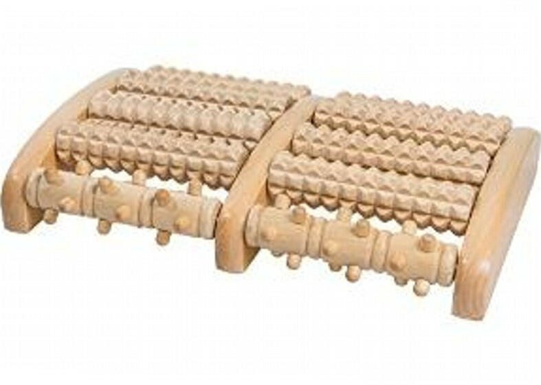 Termék jellemzői: - fa talp masszírozó - természetes anyagokból - 2x4 méhsejt szerkezetű és 2x1 akupresszúrás görgővel - 27x18 cm méretű - egy tengelyen 11 cm széles a görgő - görgők átmérője kb 2 cm