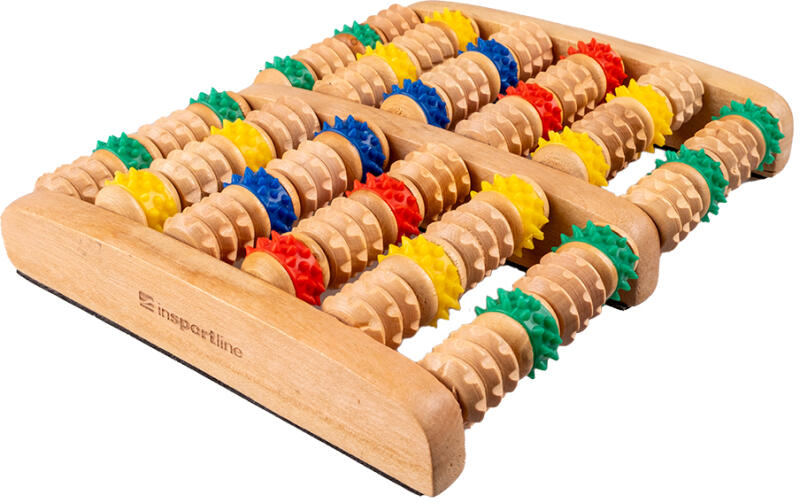 Az inSPORTline Ilonpi Fa lábmasszírozó segít a lábak ellazulásában és javítja a vérkeringést. Mindössze annyit kell tenned, hogy leülsz és leteszed a deszkát a padlóra, majd előre-hátra mozgatod a lábadat a 12 masszázsgörgőn, amelyeken fa és műanyag tüskék találhatók. Ezek mindkét irányba forognak a fa tengelyeken. A deszka alsó oldala csúszásmentes habbal van bevo