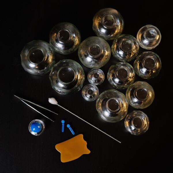 Próbáld ki otthon a köpölyözés ősi formáját! Az inSPORTline Sebsahar köpölyöző készlet tökéletes felszerelés mind a masszázshoz , mind a száraz köpölyözéshez , és segíti a vér keringését a szervezetben, eltávolítja a káros anyagokat és erősíti a bőr szerkezetét . A szett 14 db, 5 különböző méretű lombikot , alkoholos merítőt, csipeszt, fém rudat és pam