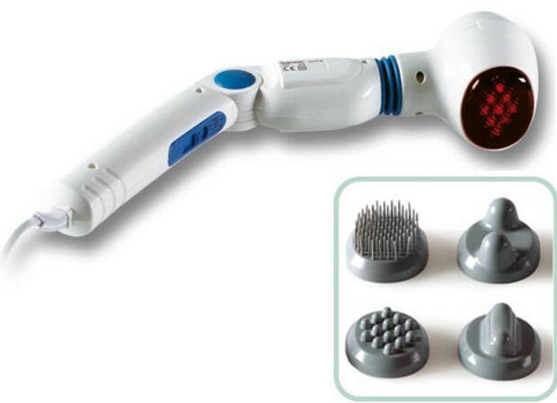 Termék leírása: - masszírozó fej infralámpaként és/vagy rezgő masszírozóként használható - nyél 45 fokban meghajlítható és több állásban fixálható - elfordítható fejrész - 4 masszázsfej - 3 állású kapcsoló: masszírozás - infralámpa - masszírozás+infralámpa - teljesítmény: 10W - hálózati tápellátás
