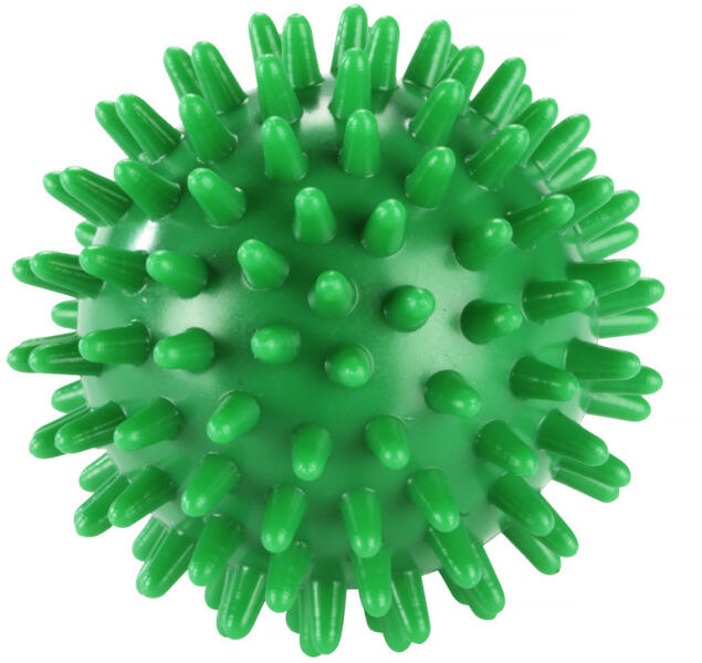 Tüskés masszírozó labda 7 cm-es méretben. A Trendy masszírozó labda egy tökéletes eszköz ujj és marok gyakorlatokra, valamint a teljes test masszírozására. Tüskés felületének köszönhetően fokozza a vérkeringést, ellazítja izomzatunkat, ezen kívül stimulálja a reflexzónákat a talpon és a tenyéren. javítja a keringést. Használatával oldhatjuk az izmok feszességét