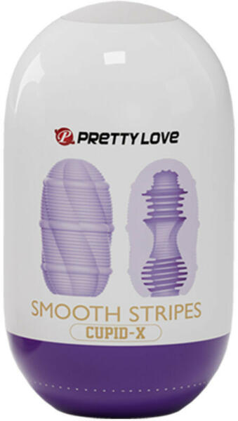 Pretty Love Smooth Stripes Cupid-X maszturbátor (mályva) Jó minőségű, rugalmas TPE gumiból készült, kompakt méretű (kb. 9 cm) kézi maszturbátor. Mérete ne tévesszen meg senkit, mert használat közben lényegesen megnyúlik, így a pénisz jelentős részét stimulálja . A belsejében lévő felfedezésre váró járatban különböző méretű és formájú dudorok és egyéb kit