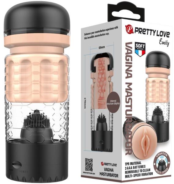 A Pretty Love Emily Vibrációs Maszturbátor egyedülálló és innovatív eszköz, amely intenzív élményt nyújt a férfiak számára. Az élethű kialakítású, bőrszerű anyagból készült betéttel, valamint a vibrációs és stimuláló funkciókkal ez a maszturbátor kiváló választás azok számára, akik új szintre szeretnék emelni az önkielégítés élményét. Könnyen tiszt