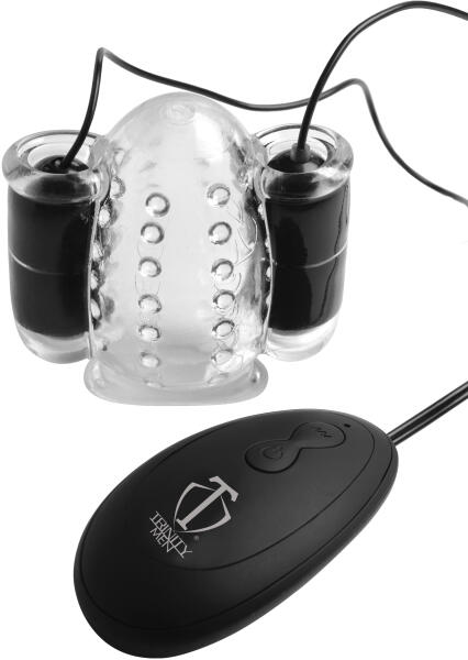 Ajándékozzon igazi kakas ugratást ezzel a Dual Cock Teaserrel! A rugalmas, TPE hüvely bütykös belsővel rendelkezik, amely reagál az erőteljes lövedékre, hogy ugratja és kínozza a szárat! A kettős vibrációs golyók a hüvely mindkét oldalán párhuzamos zsebekbe csúsznak.