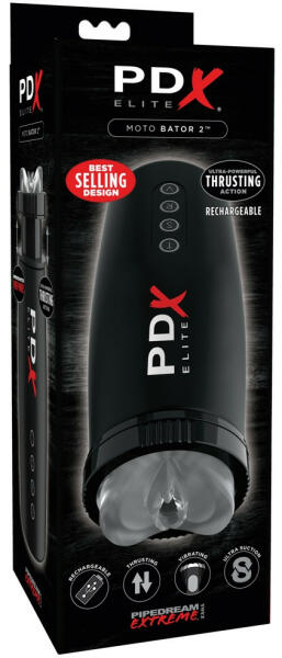 PDX Elite Moto Bator 2 - Egy igazi pénisz szívó, fel-le mozgó csodapunci, mely még rezgéssel is kényezteti farkadat! Többfunkciós kényeztető mester, mely egyszerre szív és gyorsan fel-le mozog a merev hímtagon, miközben bizsergeti is! Stabil, merev műanyag vázzal készül, két erős motorral. Belül érzékien puha, nagyon rugalmas, áttetsző színű betéttel (kivehető, könny