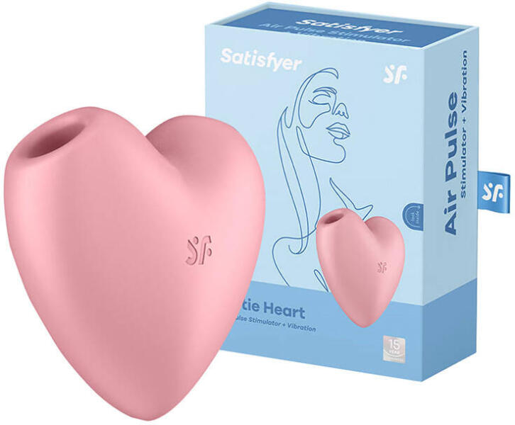 Clitoral massager Satisfyer Cutie Heart Light Red (pink) Satisfyer Cutie Heart Light Red Clitoral Massager (pink) The Cutie Heart Satisfyer is a charming and discreet heart-shaped clitoral massager that no one will suspect what you're doing with it in secret. Equipped with two motors, it combines vibration functions with Air Pulse technology in 12 and 11 modes, respectively, so you'll discover who