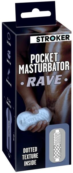 Nagyon könnyen használható, átlátszó Pocket Masturbator Rave a Strokertől, izgalmas méhsejttel és pontozott textúrával a belsejében. A rugalmas maszturbátornak pontozott felülete is van, ami azt jelenti, hogy nem csúszik ki a kézből a forró szólók során.