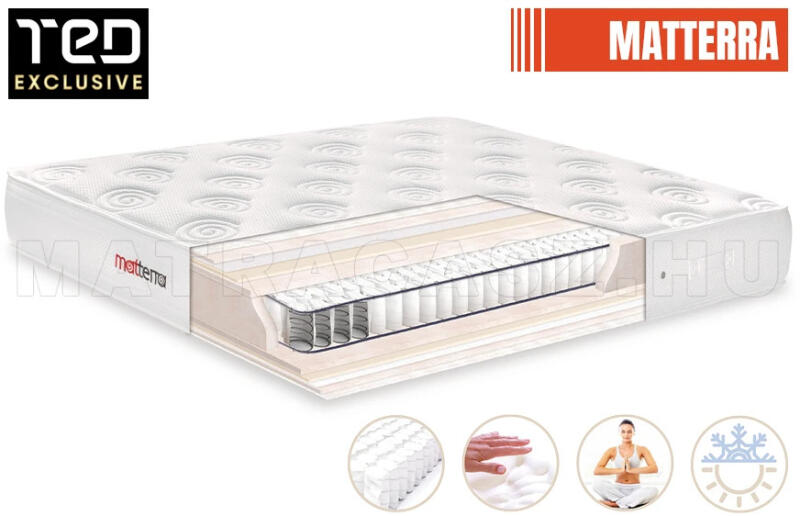 A Ted Matterra 7 zónás multipocket táskarugós matrac minden részletében a luxust és a kényelmet képviseli. Környezetbarát és egészségvédő semlegesítő technológia 7 zónás multipocket táskarugós rendszer a pontos testtámaszért Testformázó memory foam a személyre szabott kényelemért Nyári-téli oldalak a szezonális igényekhez Puha, tartós kötött textil huzat a maxi