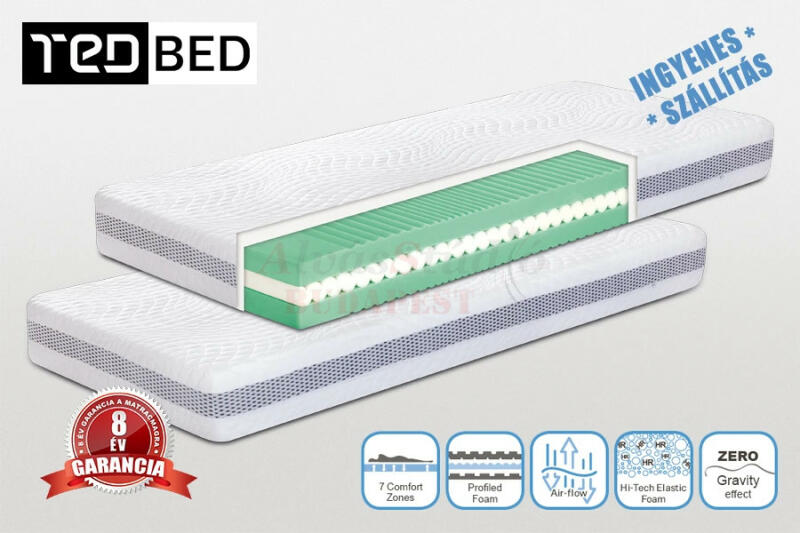 20 cm vastag 7 zónás matrac, magas minőségű HR légáteresztő hideg-habokból, több rétegű profilozással. Lágy-félkemény matrac könnyed légies érzetet nyújt. Az új-generációs 7 zónás Ergo Disc matrac a test anatómiai felépítését figyelembe véve lett megtervezve. Magas minőségű légáteresztő hideg-habokból (30kg/m 3 ) készült, a legújabb gyártástechnológia se