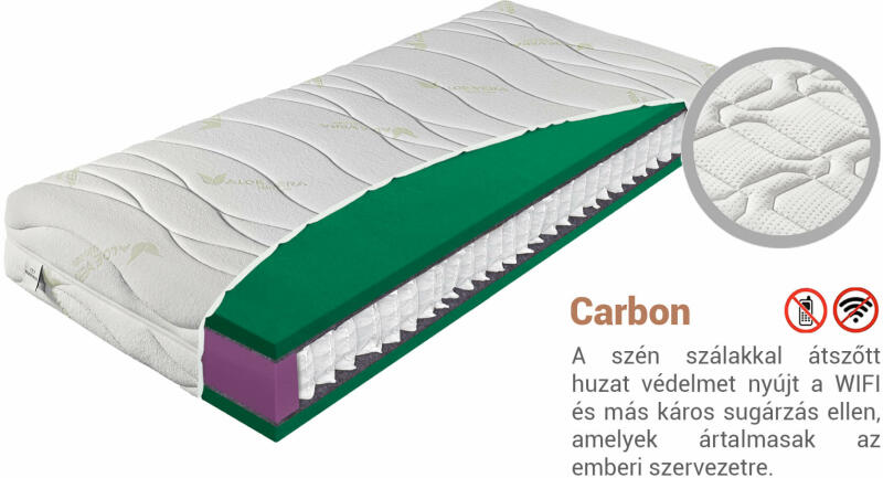 A ZION 200x160 cm AloeVera hab matrac táskarugós alappal nagyon rugalmas és jól idomul az ember testéhez. A táskarugós matracok rendkívüli kényelelmesek és maximális pihenést garantálnak. A matrac forgatásával hosszútávon élvezheti ezt a kényelmet. Minden rugó egy kis "táskába" van csomagolva, amely lehetővé teszi, hogy mindegyik külön hozzáidomuljon a test formájához