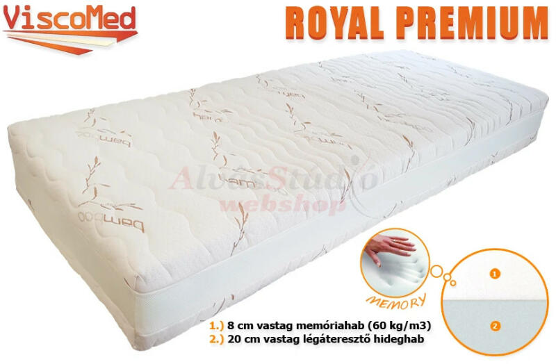 Kellemes félkemény komfort. 8 cm nagy sűrűségű (60 kg/m3) memóriahab. 20 cm nagy teherbírású hideghab. Mosható AloeVera huzat. ViscoMed Premium matrac felső kényelmi rétege ViscoMed Premium memory matrac ideális keménységének köszönhetően egyik legkedveltebb memóriahabos matracunk. A felső kényelmi rétege 8 cm vastag nagy sűrűségű valódi öntött memóriahab (60 kg/m